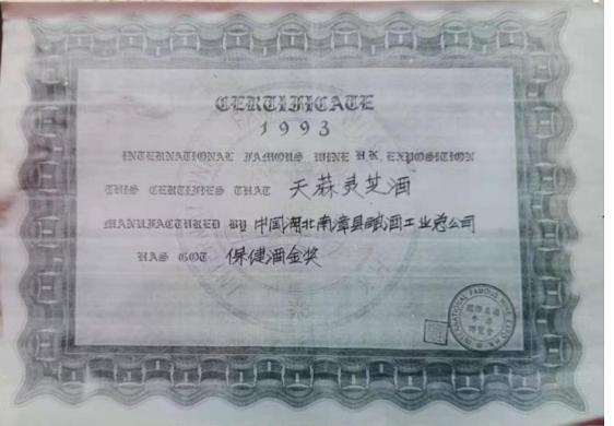 1993年,在首届香港国际名酒博览会上“天麻灵芝酒”荣获保健酒金奖。